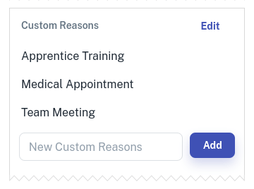 - Optional: Select the Edit button to Remove or Edit any current Custom Reasons