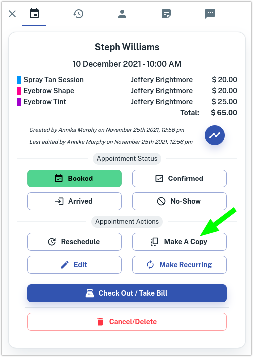Sometimes you may want to duplicate or copy an appointment into another day.