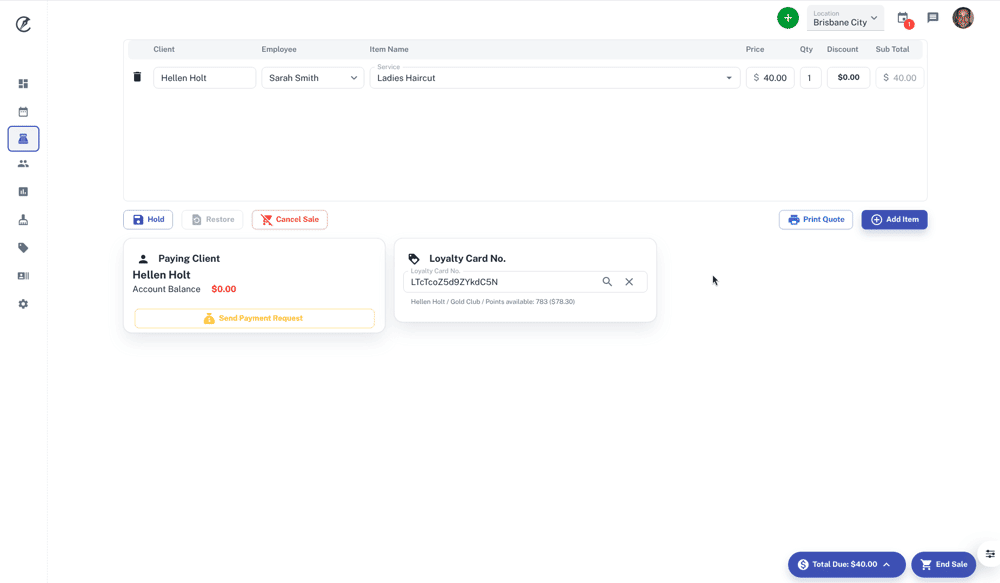 - Click on End Saleto finalise the transaction
