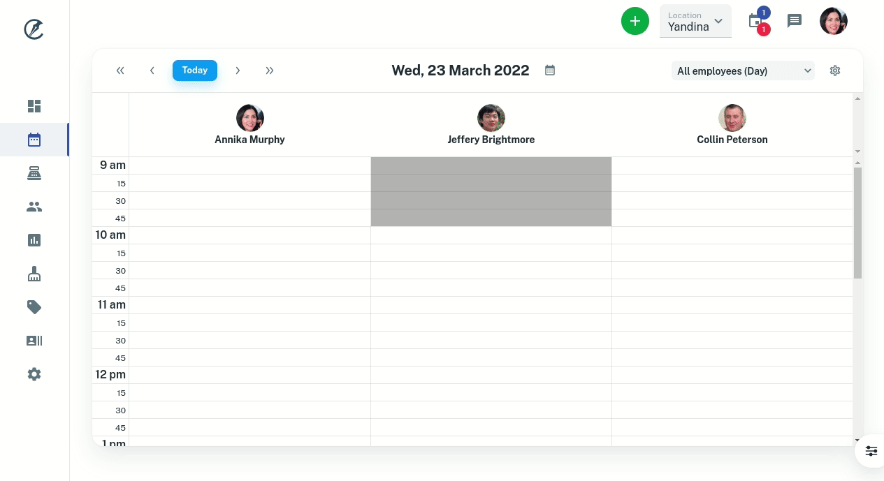 - On the computer click on the time you want to create the appointment. The new appointment screen appears.