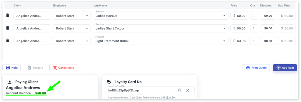 - When at the POS screen look in the status box on the right, the client’s current balance is shown here.