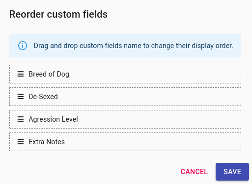 Reorder Custom Fields