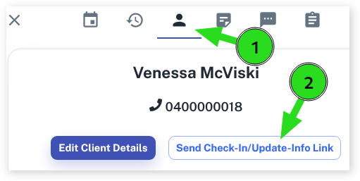 - In the Overview tab press the “Send Check-in/Update-info Link” button