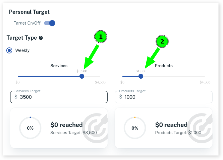 - Choose what your Service Target is by sliding the Services slider