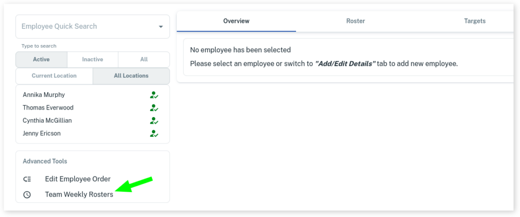 NOTE: The Team Weekly Roster overrides the information contained in your employee roster but only where you make changes.