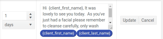 Your message will be saved as soon as the Update button is pressed. Repeat the above steps for any other after appointment message you wish to edit.