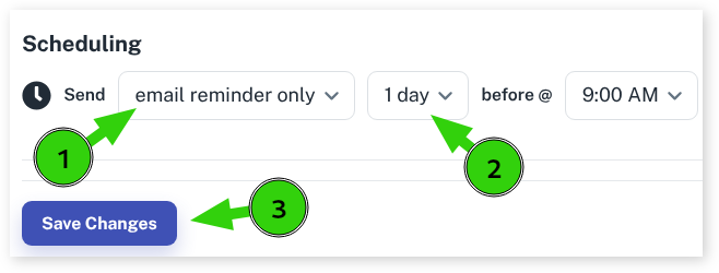 - Before clicking on the Save Changes button you will need to Cancel Scheduled SMS to update scheduled reminders with the new changes