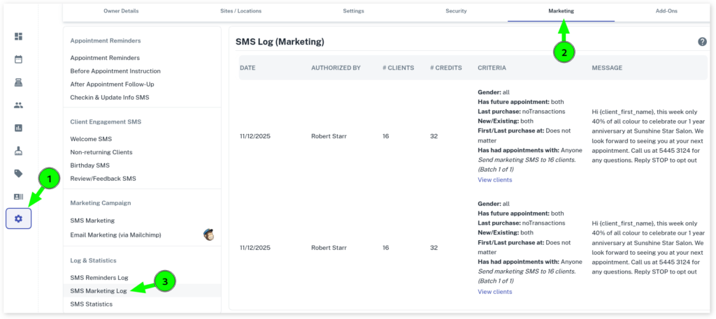 Learn how to easily view your past SMS marketing campaigns by accessing the SMS Log in the Marketing tab of your account, allowing you to monitor your activity and track credit usage efficiently.