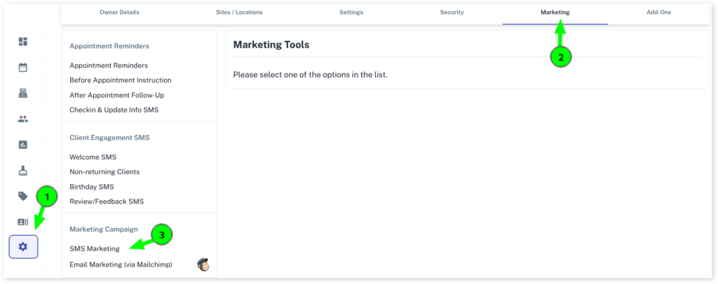 - Click on SMS Marketing