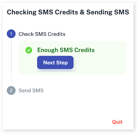 You will now see a pop up showing Checking SMS Credits & Sending SMS – Step 1.