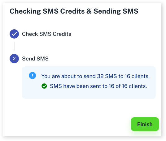 The system will check if you have enough SMS credits to send at this point. If there’s enough the messages will send. If you need more credits to reach your audience it will let you know and give you the opportunity to top up your credits at this point.