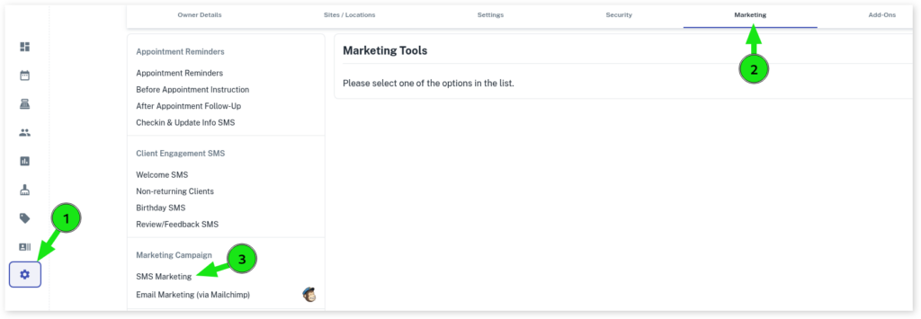 - Click on SMS Marketing