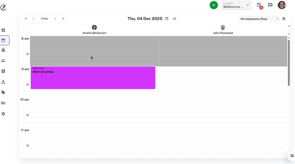 - Select the Class on the Calendar