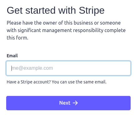 - If you don’t have a Stripe account, fill in the form and submit