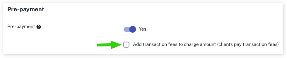 - Choose if the Transaction Fees are passed to the client