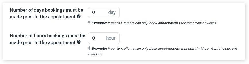 - In the Hours, specify the minimum number of hours in advance that clients can book an appointment.
