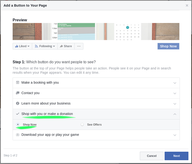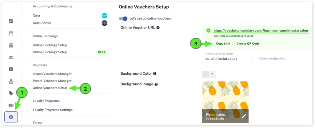 IMPORTANT NOTE: If you already have online booking set up and linked to Facebook you don’t need to proceed. A link to purchase gift vouchers will appear in your online booking screen at the very top if you have this in place. You can however choose to read below if you’d like another link added separately.