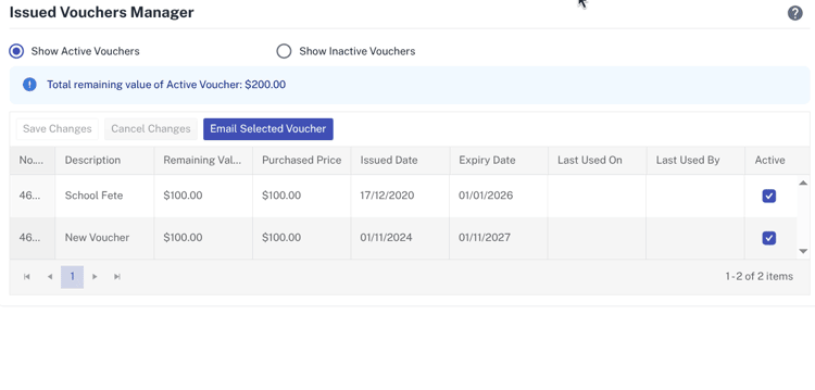 - Click on the Email Selected Voucherbutton
