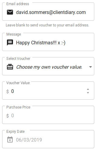After you’ve setup your Online Vouchers, your client will visit your Facebook page where you will need to share your link. For websites you will need to set up a Buy Voucher button. Once they follow your link or click a button they will be shown the following screens.