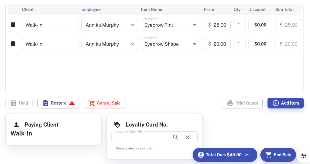 - Select the Discount box for a Service or Product