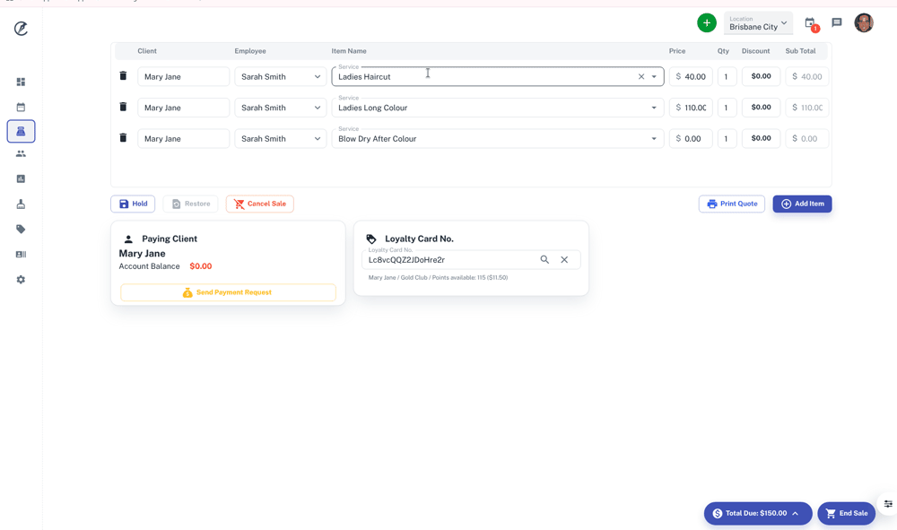 - Select Client nameor Walk in