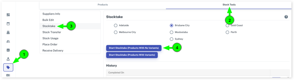 - Click on Stocktake on the left menu